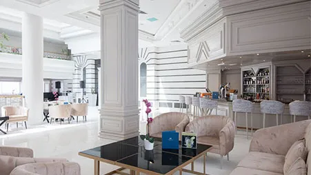 Para mejorar la eficiencia energética y reducir el desperdicio, el Constantinos The Great Beach Hotel ha sido equipado con avanzados sistemas de domótica Comelit para la gestión inteligente de la iluminación, el clima y las persianas. Gracias a los paneles de control capacitivos, los huéspedes pueden manejar cada habitación de forma rápida e intuitiva, garantizando el máximo confort y una experiencia totalmente personalizada.